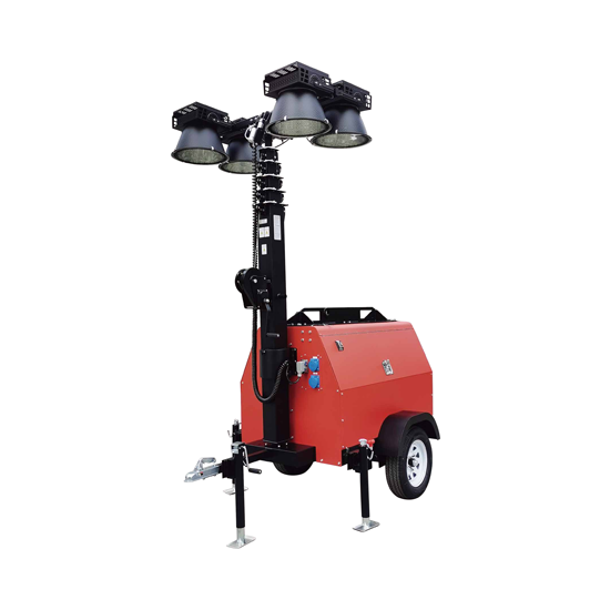 LTH9510 Trailer Light Tower: 9.5m mast, LED/metal halide options, diesel generators. Manual/electric lifting for flexible use—ideal for big construction and outdoor projects